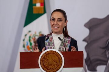 Claudia Sheinbaum apareció sin cubrebocas junto al presidente López Obrador por primera vez; el presidente dijo un día antes que el accesorio no era “indispensable”