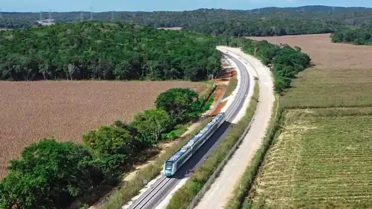 La ruta del Tren Maya abarca mil 554 kilómetros en cinco estados de la península de Yucatán: Chiapas, Tabasco, Campeche, Yucatán y Quintana Roo. Además, cuenta con 34 estaciones y 14 paraderos cercanos a sitios arqueológicos, como Palenque y Chichén Itzá, y reservas naturales.